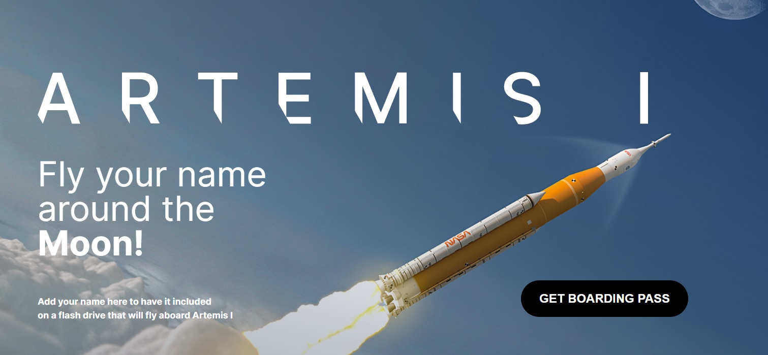 Como una de las iniciativas que ha implementado la NASA, han propuesto que el nombre de todas aquellas personas que así lo deseen, viaje en el Artemis I, en una unidad de disco externa y sea de los primeros nombres en llegar, literalmente de manera física a la Luna.