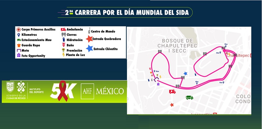 La 2ª Carrera, en esta ocasión nocturna, tendrá un recorrido de 5 km a través de la Primera Sección del Bosque de Chapultepec. Hasta el momento se han registrado más de 1,500 corredores a través del micrositio https://pruebadevih.org.mx/registro-carrera5k. solo falta que pasen por su kit conmemorativo.