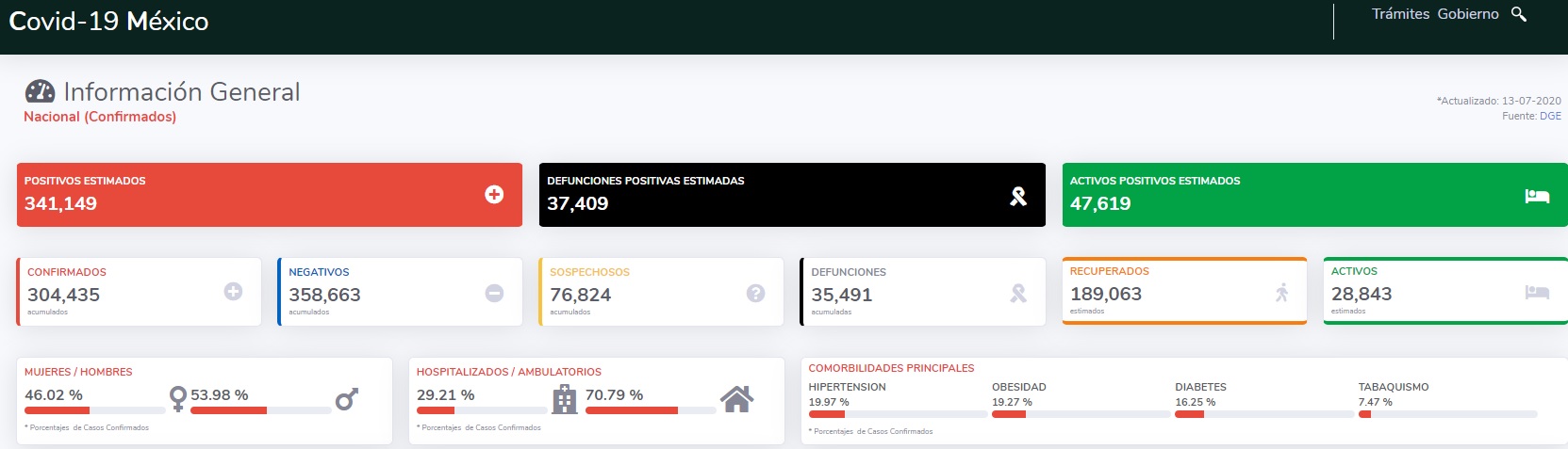 De acuerdo con los datos dados a conocer el día de hoy por la Secretaría de Salud, al 13-07-2020, a…