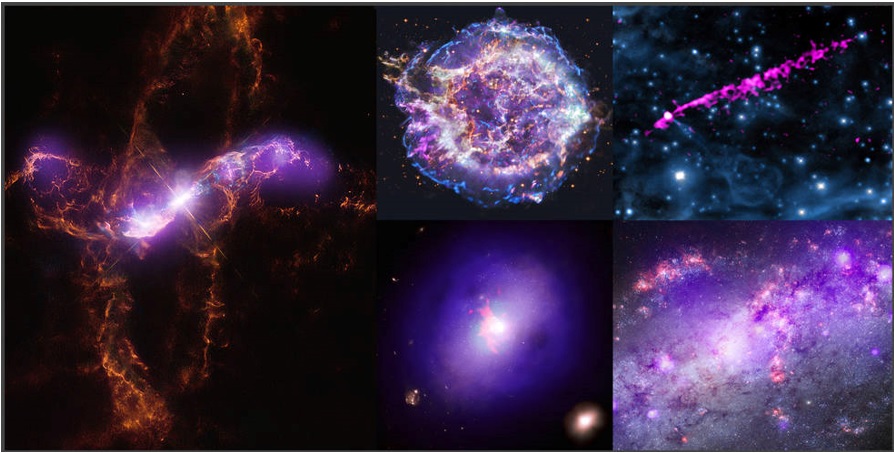 Para investigar a fondo los objetos y fenómenos cósmicos, los científicos necesitan telescopios que puedan detectar la luz en lo que se conoce como espectro electromagnético. Esta galería proporciona ejemplos de las formas en que se pueden combinar los diferentes tipos de luz de los telescopios en tierra y en el espacio. El hilo común en cada una de estas selecciones son los datos del Observatorio de rayos X Chandra de la NASA, que ilustran cómo los rayos X, que son emitidos por procesos muy calientes y energéticos, se encuentran en todo el Universo.