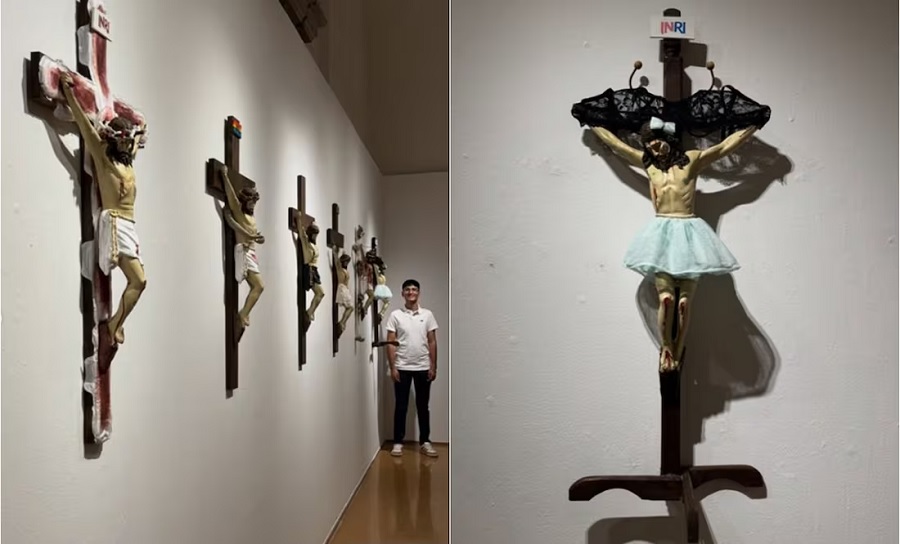 La exhibición presentó siete imágenes de Cristo crucificado, intervenidas con motivos gráficos que hacen referencia a opciones alternativas de género y sexualidad humana. Concuerdo en que es de mal gusto juguetear con figuras que tienen un alto contenido sacro, como lo es la representación icónica del máximo mártir de la fe cristiana. Pero también creo en la libertad de expresión artística, y que el arte tiene derecho a experimentar.