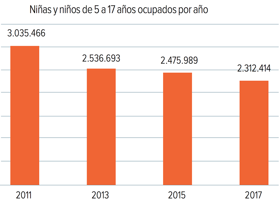 En efecto, de acuerdo con los datos del INEGI, entre el 2011 y el 2017 la cifra de quienes tienen de 5 a 17 años de edad, y que trabajan, se redujo de 3.035 millones a 2.32 millones; es decir, 715 mil en un lapso de 6 años, o bien, un promedio aproximado de 119,166 por año. Esto significa que, al ritmo que vamos, tardaríamos 20 años más en la erradicación de este pernicioso fenómeno.