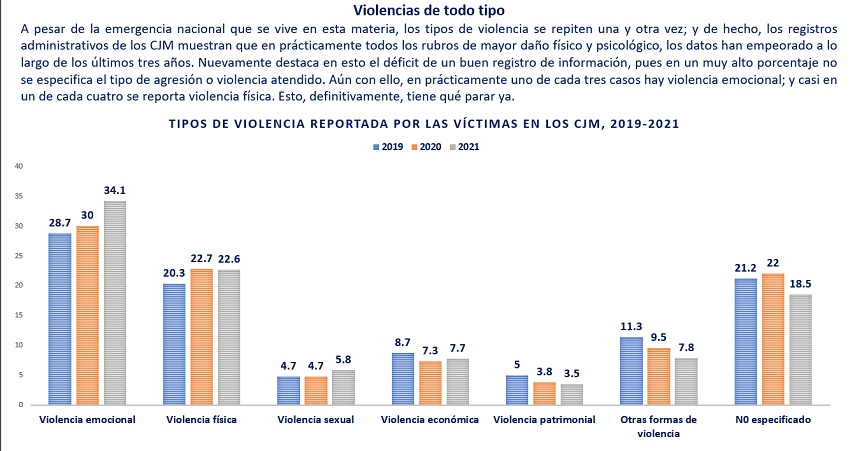 El Instituto Nacional de Estadística y Geografía (INEGI) presentó los resultados 2022 del proyecto de Recopilación de Información de los Centros de Justicia para las Mujeres (CJM). Se trata de espacios en los que se deben concentrar servicios especializados en materia de atención integral con perspectiva de género para mujeres víctimas de situaciones de violencia, y para sus hijas e hijos.