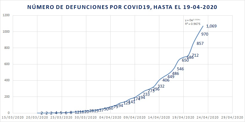 El día de hoy se informó en la conferencia diaria que en el país ya hay 1,069 muertes por COVID-19. Además, se registran ya 11,633 casos confirmados acumulados desde el inicio de la pandemia, de los cuales 4,127 se consideran activos, al haberse presentado en los últimos 14 días.