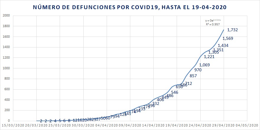 De esta forma, las muertes por el nuevo coronavirus aumentaron de 1,569 a 1,732 entre el 28 y el 29 de abril, lo que significa un incremento del 10.38% en un solo día. Otras 152 muertes permanecen como sospechosas de COVID-19.