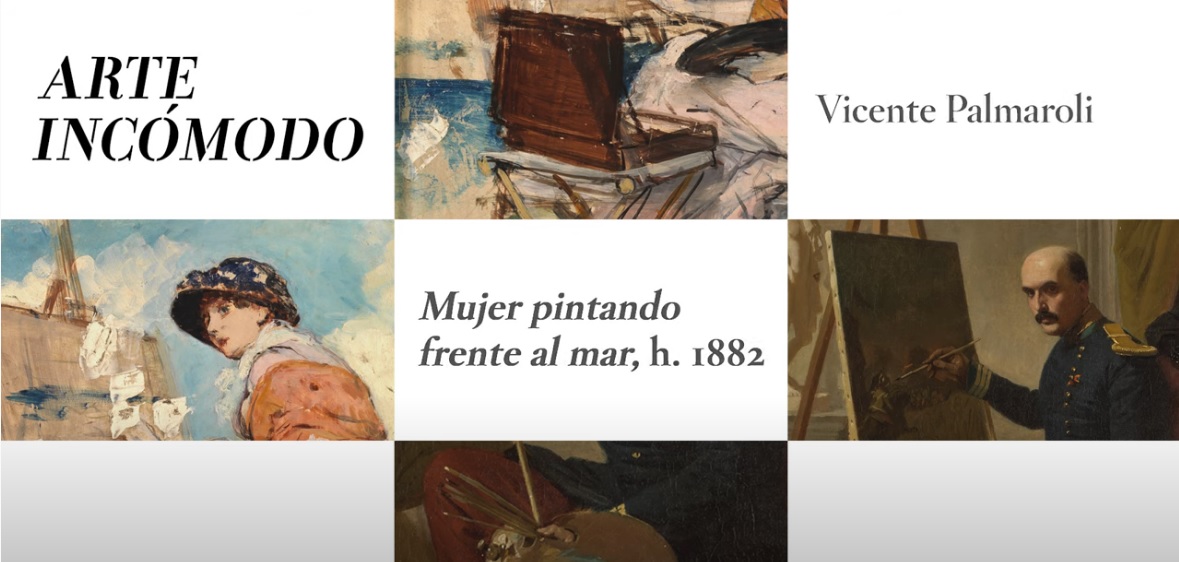 Por su parte, el cuadro “Mujer Pintando frnete al mar” es de la autoría de Vicente Palmalori, quien nació en 1834 y murió en 1892. Al igual que Valeriano Domínguez, fue un pintor de la corriente romántica. La carrera de Palmalori estuvo auspiciada por el rey consorte Francisco de Asís de Borbón y en el mundo artístico, por el afamado Carlos de Madrazo.