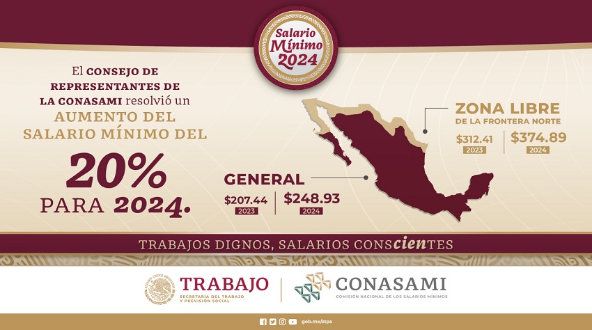 La Propuesta de fijación de los salarios mínimos generales y profesionales que presentó la Comisión Nacional de los Salarios Mínimos (CONASAMI) para fundamentar el incremento de 20 % para 2024 contiene argumentos y evidencias sólidas que soportan la decisión. El documento, que se encuentra aquí , parte de reconocer que con todo y sus notables mejoras, el mínimo mexicano es actualmente el segundo más bajo de entre 29 países de la Organización para la Cooperación y Desarrollo Económico.