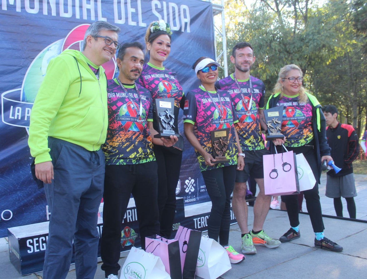 | Visuales | Habrá visuales con el lema alusivo, activaciones físicas, templete, pódium para la premiación, entrega de medallas para todas las personas participantes registradas en la página https://pruebadevih.org.mx/carrera5k/ y que han entregado su donativo en productos que se destinarán a personas trabajadoras sexuales, personas viviendo con VIH, en situación de calle o vulnerabilidad, así como a un programa de distribución gratuita de toallas sanitarias para mujeres y personas menstruantes que no tienen acceso a insumos de salud menstrual. |