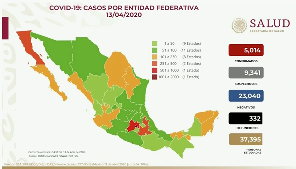En la conferencia de hoy, las autoridades de salud informaron que los casos mortales de COVID-19 llegaron ya a 332 este lunes. Además, hay 5,014 casos confirmados, 9,341 continúan como sospechosos y 23,040 han sido catalogados como negativos.