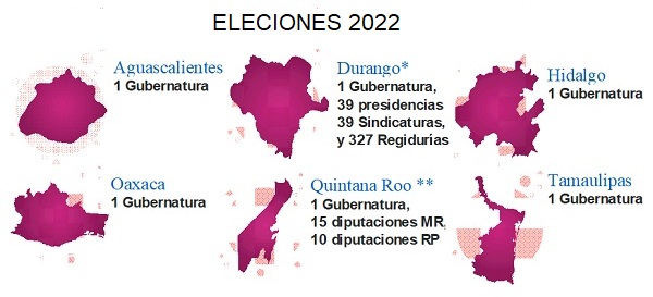Los partidos van a competir por 6 gubernaturas en 2022: las de Aguascalientes, Durango, Hidalgo, Oaxaca, Quintana Roo y Tamaulipas.