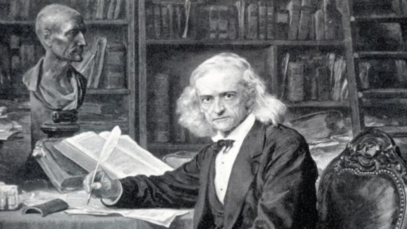 Mommsen nació en 1817 y murió en 1903; fue un historiador, jurista y epigrafista alemán cuyo trabajo sobre la historia y el derecho romano marcó un hito en la historiografía moderna. Fue galardonado con el Premio Nobel de Literatura en 1902 por su monumental obra Historia de Roma (1854-1885), en reconocimiento a su capacidad narrativa y análisis crítico, cualidades que lo destacaron como “el mayor maestro vivo del arte de la escritura histórica” en su tiempo.